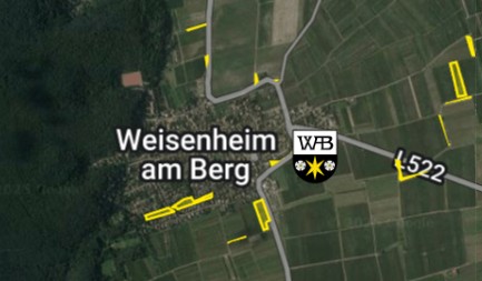 Weisenheim am Berg liegt zwischen dem Pfälzerwald und den Weingärten entlang der Rheinebene. Das Dorf ist Teil des Landkreises Bad Dürkheim und - gemeinsam mit sieben weiteren Orten - der Verbandsgemeinde Freinsheim. Weisenheim am Berg ist ein traditionelles Weindorf mit rund 1.800 Einwohnern, das während der vergangenen Jahrzehnte kräftig wuchs, ohne jedoch seinen ganz eigenen Charakter als “Edelweindorf” zu verlieren. Dank seiner Lage abseits der Bundesstraße bietet Weisenheim am Berg sehr viel Raum zur Entspannung - und gleichzeitig jede Menge Anlässe, gemeinsam mit den Bürgern zu feiern und allerlei Freizeitspaß zu erleben. 260 Hektar Weinanbaufläche und mehr als 600 Hektar Wald betten Weisenheim am Berg in eine Landschaft, deren Beschaulichkeit und Abwechslungsreichtum von den Gästen gelobt wird, und die für manchen Neubürger ausreichend Anlass für einen Umzug boten. Unsere Winzer sind mit ihren Höfen gleichmäßig im Ort verteilt, der Kern unseres Dorfes bildet der historische Dorfplatz.